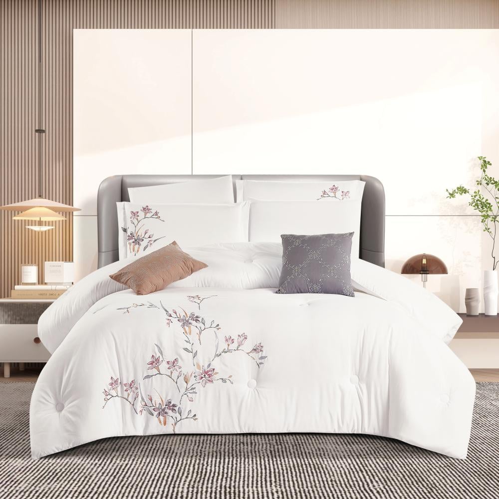 هواء النسيم البارد يداعب أغصان الزهر اليانعة 🌷هذا المنظر الخلاب هو ما يحكيه مفرش أغصان الناعم بتطريز أغصان الأزهار الذي سوف ينقلك بخفة بين الأحلام الوردية.